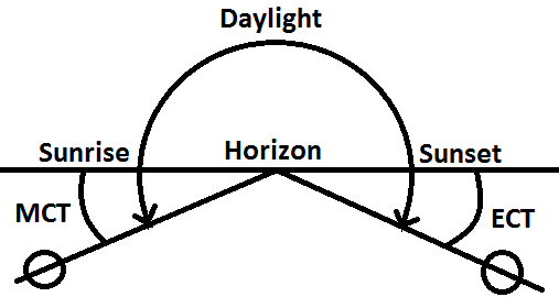 - ECT begins at sunset and ends when the centre of the sun is 6° below the celestial horizon.